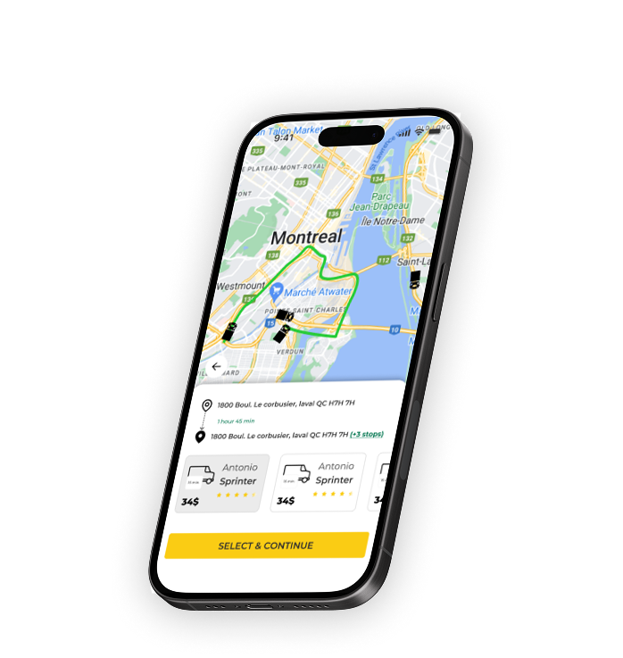 Schedule your move, add stops, and choose the mover that best fits your needs for a smooth, efficient service.